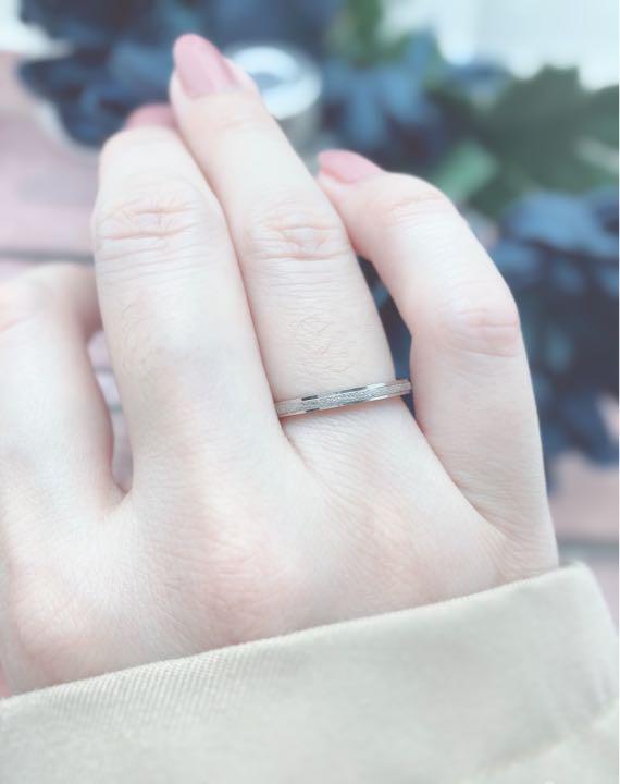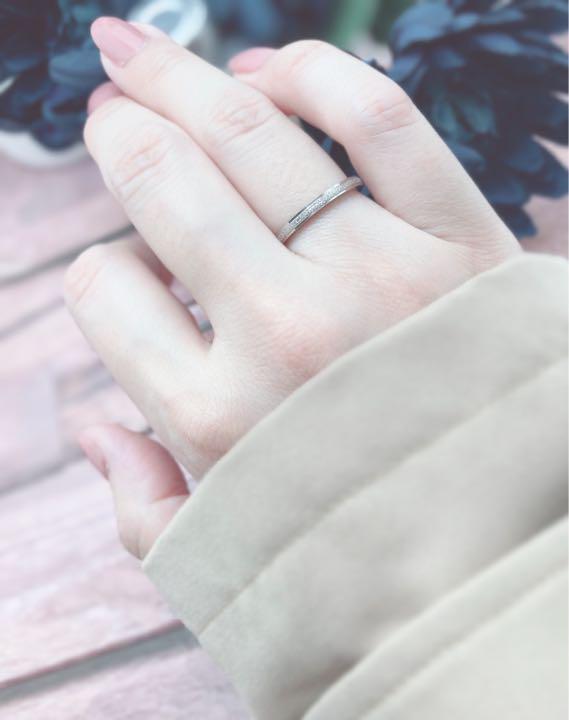 キラキラしたラメのようなデザインのシンプルなシルバーリングです。